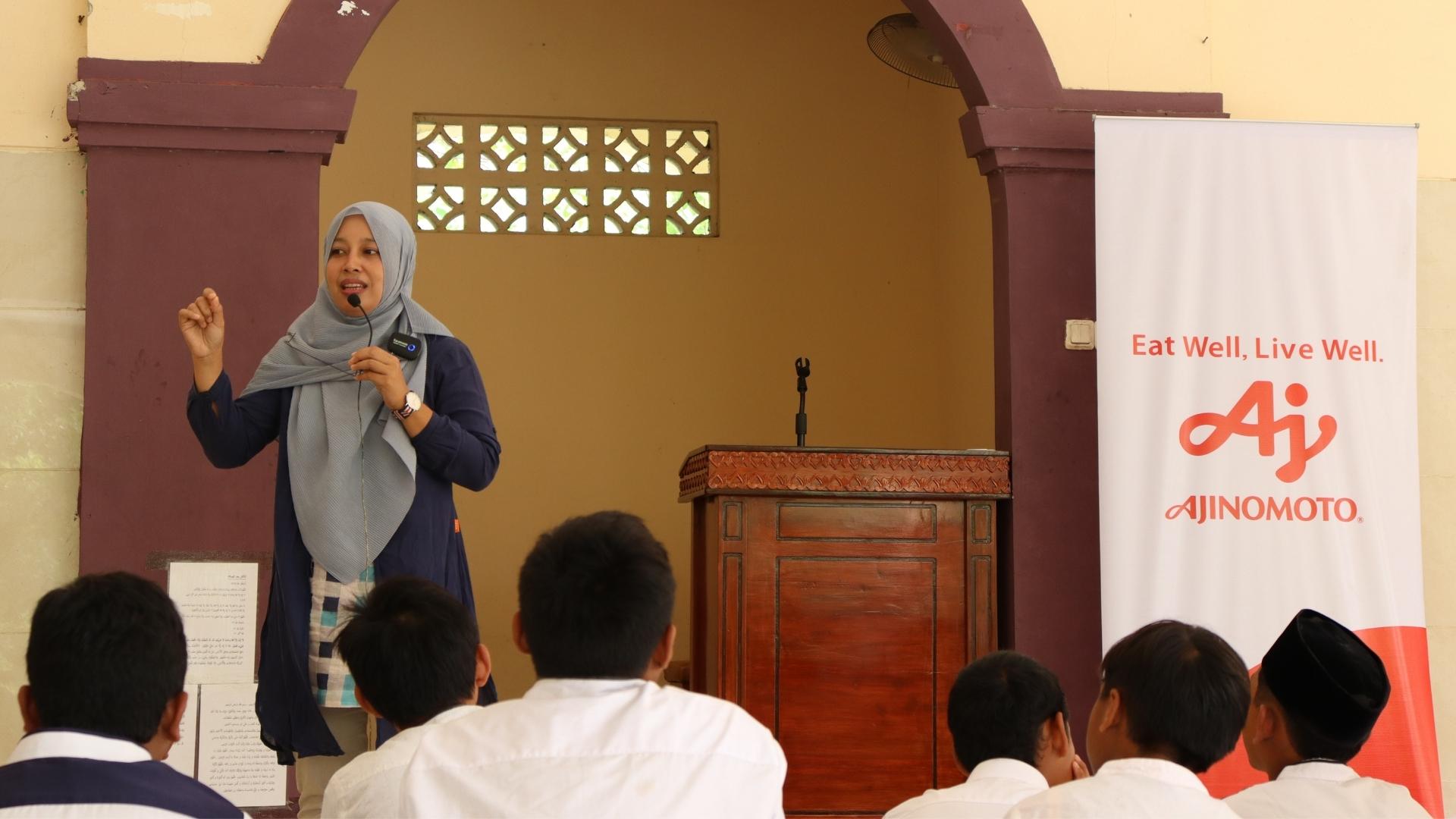 Jakarta, 15 July 2022 – PT AJINOMOTO INDONESIA (Ajinomoto) is committed to improving nutritional status, as well as improving the Clean and Healthy Lifestyle (PHBS) of children and adolescents in Indonesia through the School Lunch Program which has been running since 2018. Continuing this commitment, Ajinomoto is back in collaboration with the Department of Community Nutrition, Bogor Agricultural University (IPB), providing information on healthy eating patterns to more than 200 santri and female students of the Al Quran Nurhasanat Islamic Boarding School - Karawang.